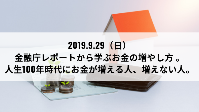9/29開催 金融庁レポートから学ぶお金の増やし方 。人生100年時代にお金が増える人、増えない人
